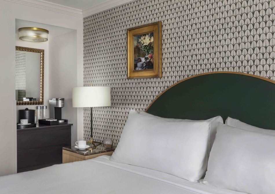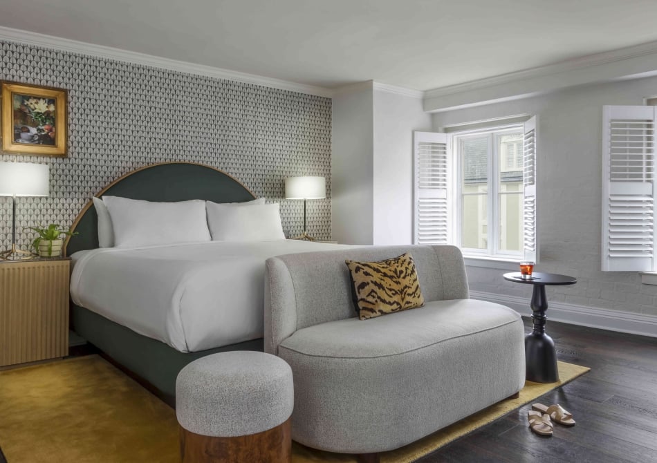 Upscale comforts in a New Orleans landmark. Equipped with loungers, king beds, modern French country-style décor, black marble bathrooms, and French Quarter or courtyard pool views. Room features one king size bed, hair dryer, iron and ironing board, in-room safe, coffee/tea maker, 42″ flat-screen TV, high speed internet, walk-in shower, and complimentary local calls.