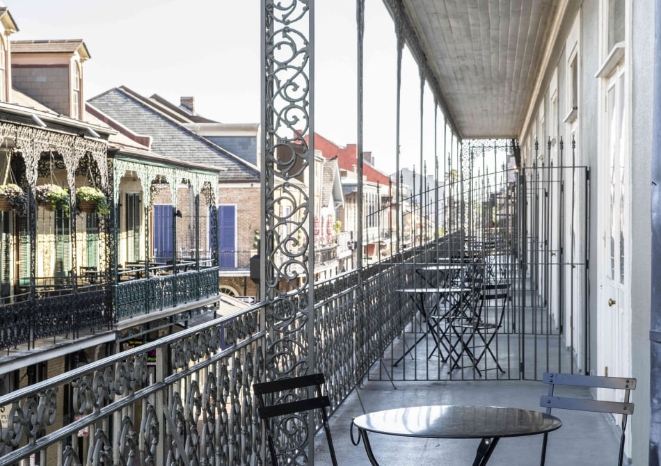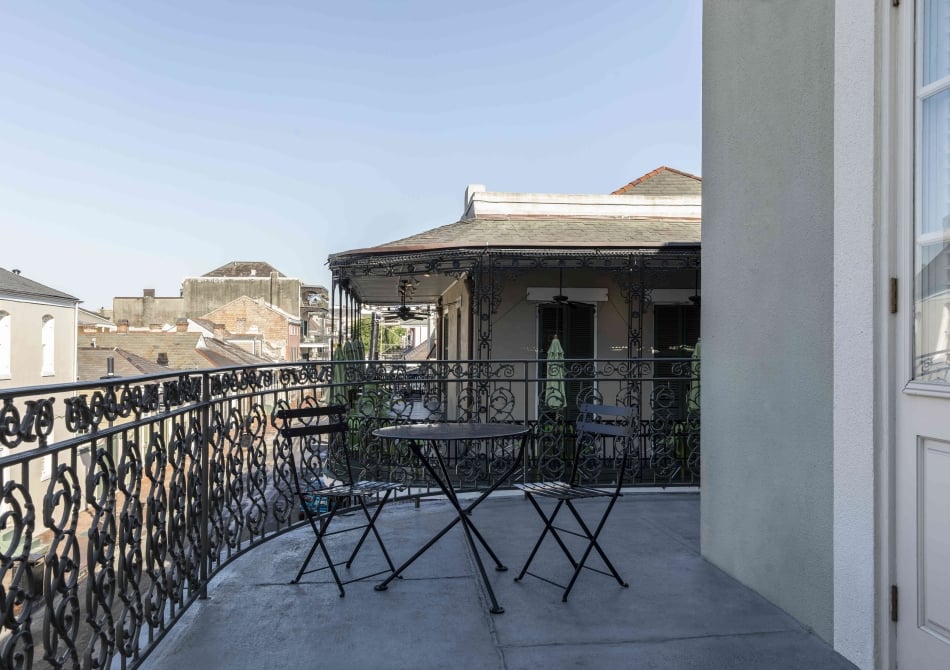 When only the best balcony will do. With an expansive open floor plan, this bi-level loft suite offers one of the best balconies, where you can wake up to the delightful French Quarter, right over Bourbon Street. Enjoy New Orleans charm and one-of-a-kind French Quarter living. you’ll find a spacious queen bedroom including a walk-shower on the upper level, with a downstairs living room with space for entertaining: wet bar, complimentary Wi-Fi, 42” flat-screen television, in-room safes, complimentary bottled water and in-room coffee and tea.