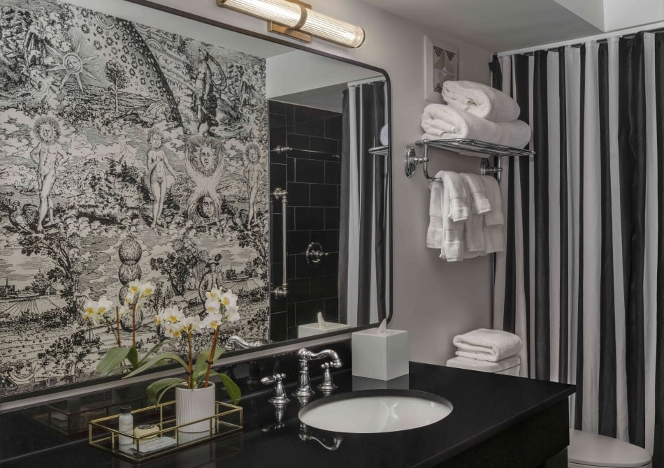 These charming St. Ann Street guest rooms capture the character of New Orleans through modern French country-style décor with custom wide-blade shutters and black marble bathrooms. Room features one queen size bed, hair dryer, iron and ironing board, in-room safe, coffee/tea maker, 42″ flat-screen TV, high speed internet, walk-in shower, and complimentary local calls.